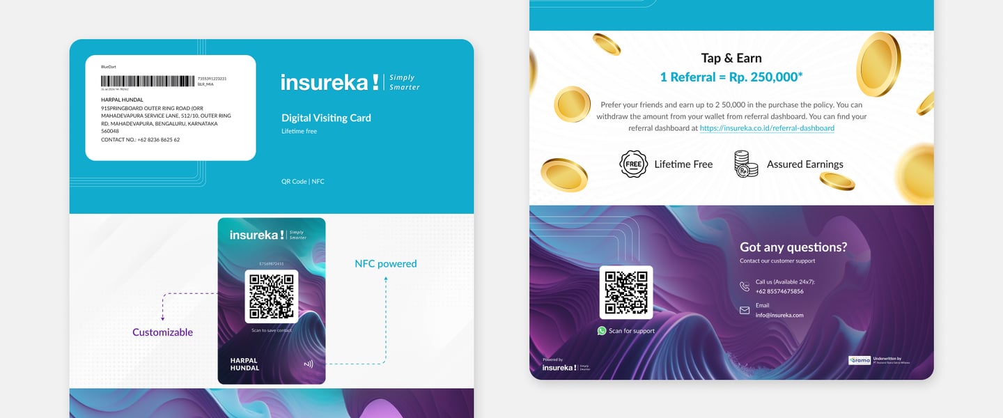 As part of insureka!’s customer onboarding and retention strategy, I designed a physical loyalty card along with a custom envelope, inspired by the look and feel of a premium credit card. This card is provided to every customer upon purchasing a car insurance policy.