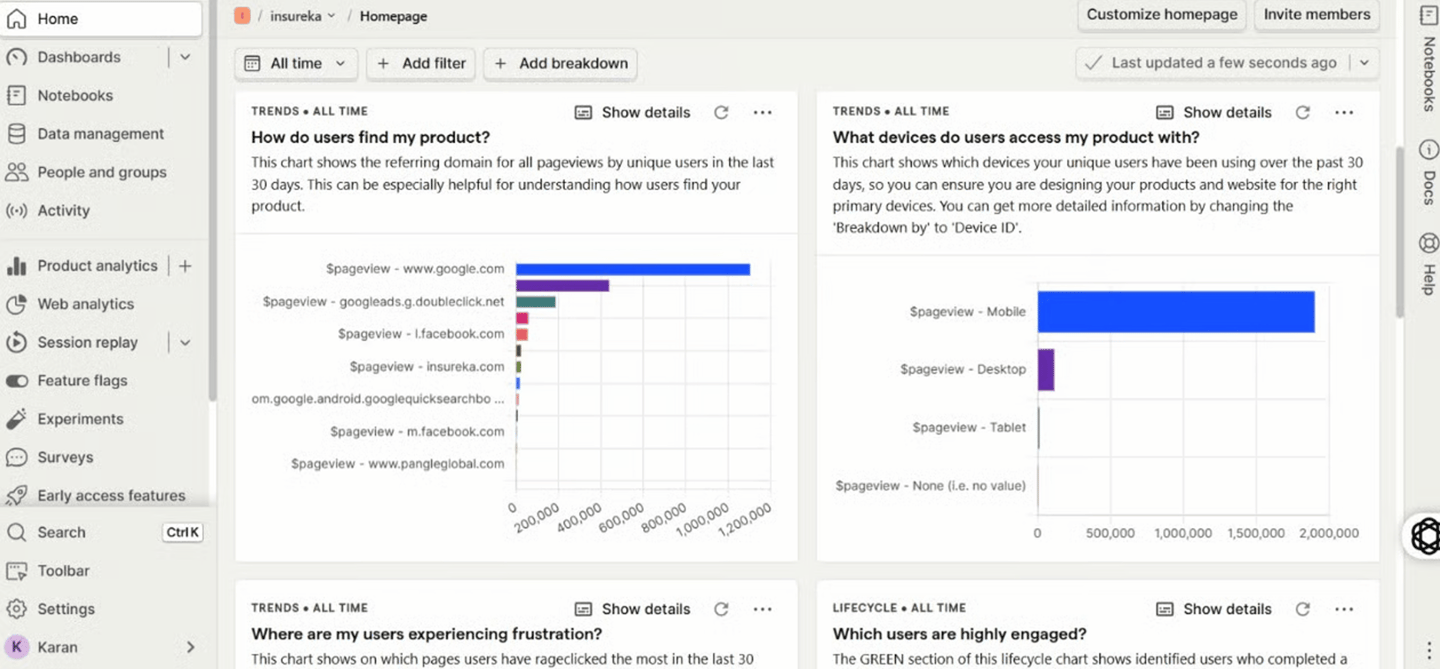 We tracked design performance using web analytics tools like PostHog to monitor user behavior, engagement, and flow efficiency. This data helped identify pain points, validate design decisions, and guided continuous improvements to optimize insureka!’s user experience and conversion rates.