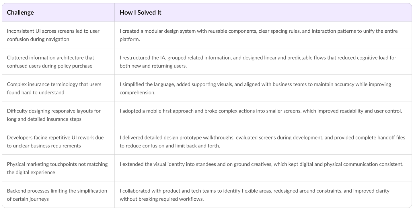 The insurance buying process on the existing insureka platform was confusing and difficult to complete because users could not easily understand policy options, navigate key actions, or trust the flow. At the same time, the interface lacked consistency and a structured design foundation, which made development slow and created repeated implementation issues.