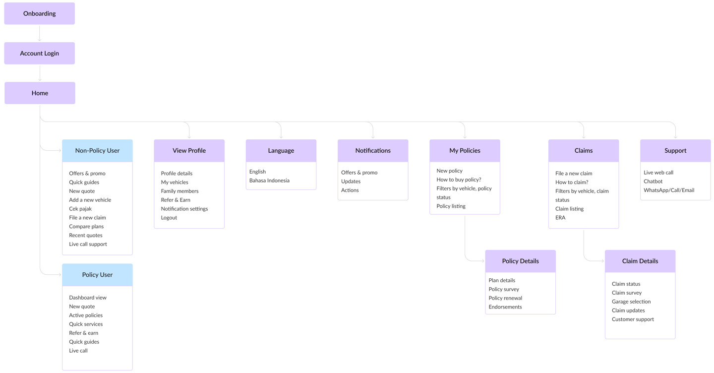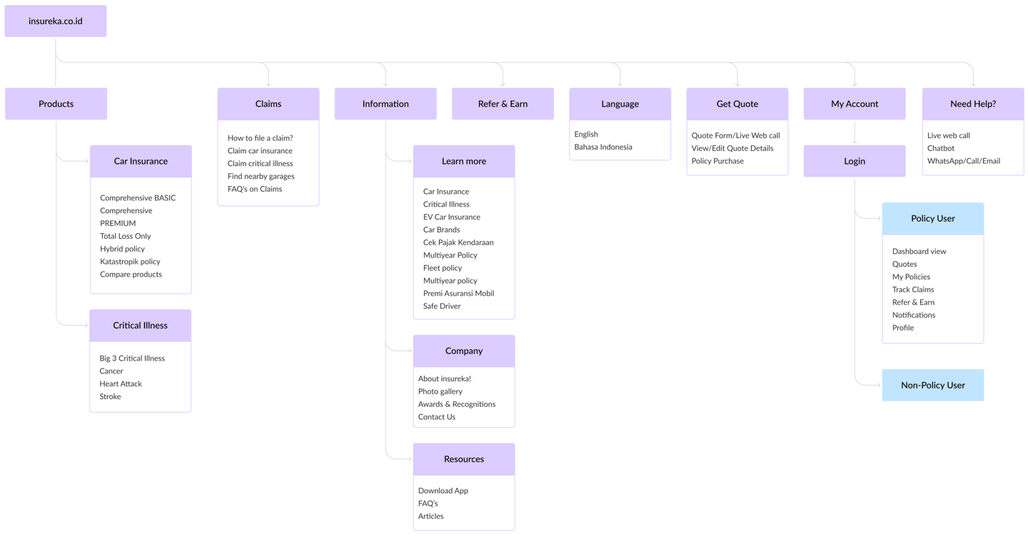 A well-structured information architecture was essential to streamline navigation and reduce cognitive load across Insureka!’s digital platform. The new IA made the platform easier to navigate, reduced drop-offs due to confusion, and allowed users to complete tasks faster with fewer clicks. It also provided a clear foundation for scalable design and content expansion in the future.
