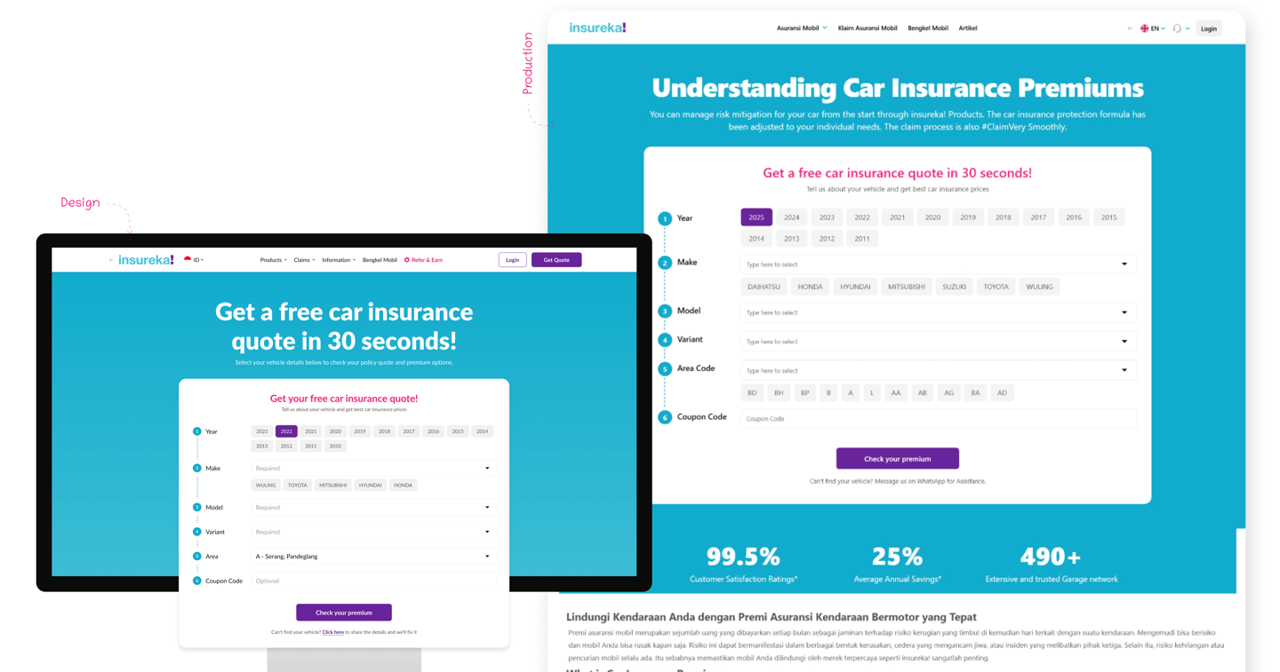Insureka is an Indonesian InsurTech platform that aims to simplify the way users compare and purchase vehicle insurance. When I joined the project, the product experience felt cluttered, unclear, and difficult to navigate. Users struggled to understand options, and the interface lacked consistency across screens. The development team also faced challenges because the existing UI did not follow any structured design framework.