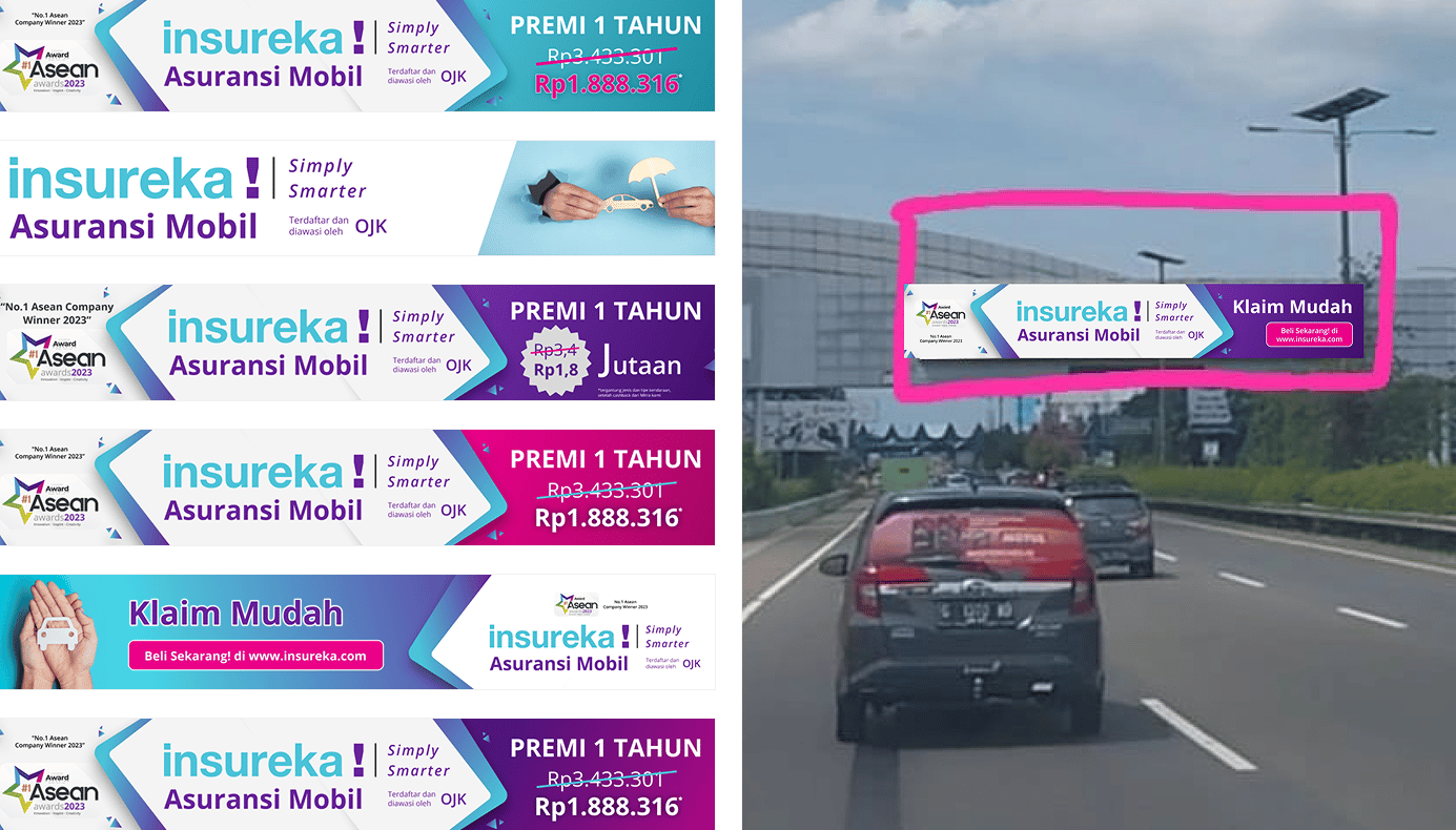 As part of a branding and marketing campaign for insureka!, a digital car insurance provider based in Indonesia, I designed a promotional billboard advertisement aimed at highlighting the company’s value proposition—affordable, smarter insurance. The goal was to combine trust-building elements with modern aesthetics to effectively convey the key messaging at a glance.