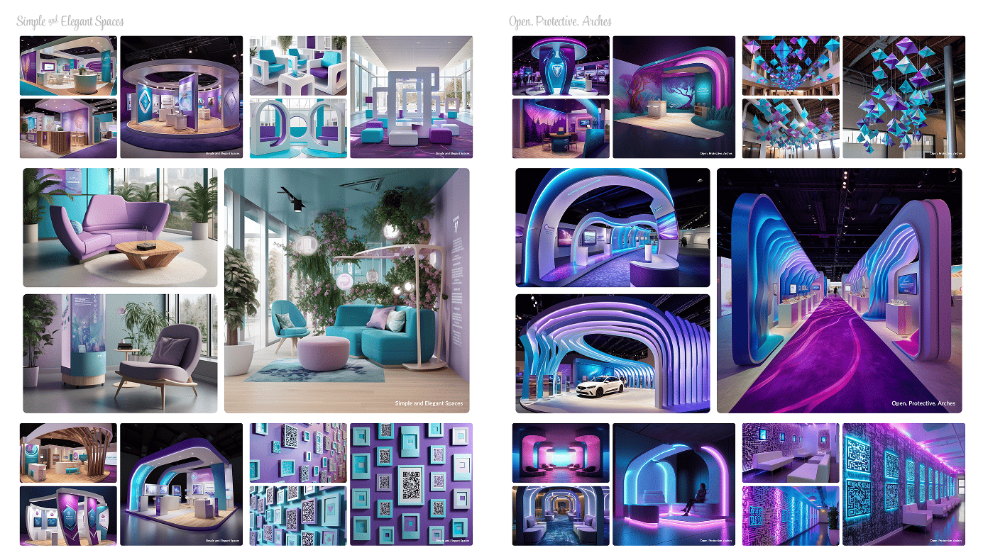 The first was simple and elegant, using clean lines, soft tones, and modular layouts for a smooth, user-friendly experience. The second, "Open. Protective. Arches.", featured curved forms and open walkways inspired by the idea of safety and welcome. This concept was visualized using Midjourney AI to explore spatial moods and forms.