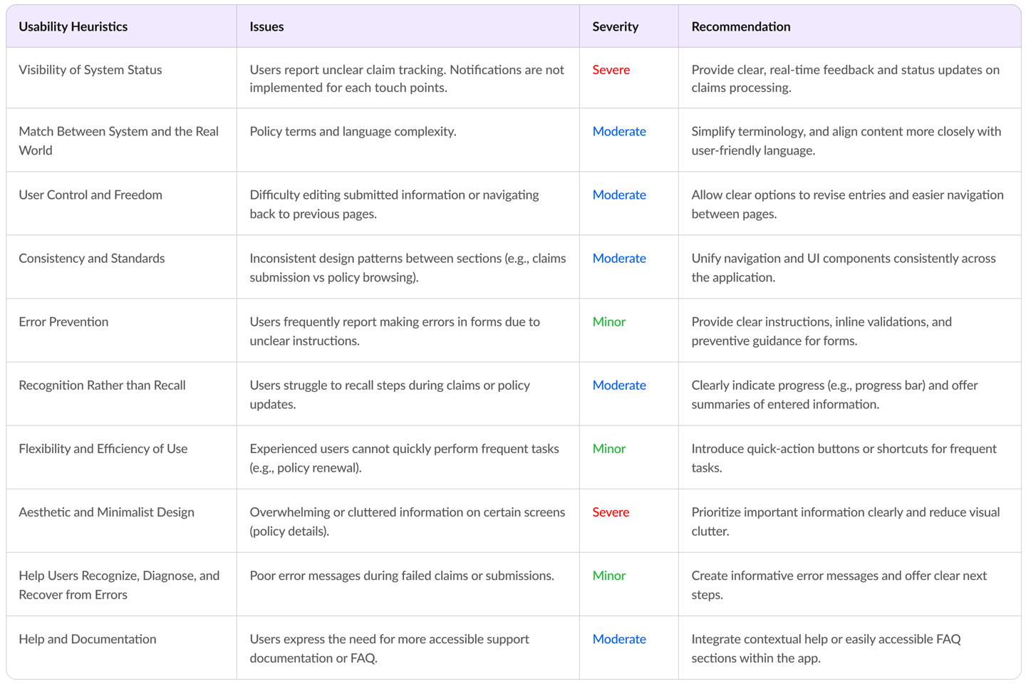 Audited the existing website and app using Nielsen’s 10 heuristics. Flagged key usability issues like lack of feedback, inconsistency in language and unclear CTAs.