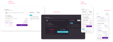 The mobile app focuses on quick access to quotes, policies, and claims with touch-friendly, consistent design. Together, they provide a seamless, user-friendly insurance experience.
