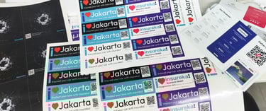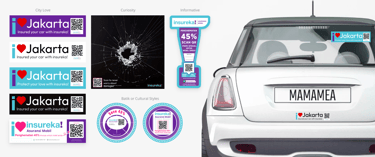 Several sticker variants were created, including “I ❤️ Jakarta” badges with QR codes, emergency-themed safety prompts, Batik-style cultural designs, and informative tabs for discounts. Each was tested on vehicles to ensure clear visibility, emotional appeal, and practical use on the road.