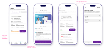 As part of the customer self-service flow, I designed standees that allowed users to: Get a quick insurance quote, simulate a claim process and 1 on 1 video call support.