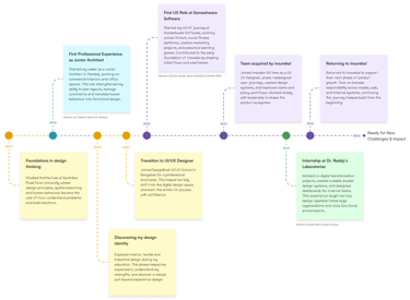 This roadmap reflects the key milestones, transitions, and experiences that shaped my journey from architecture to digital product design. Each touchpoint highlights how different stages of my career contributed to the way I approach problems, understand users, and build meaningful design solutions.