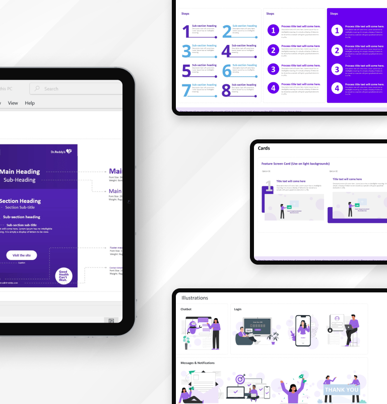 A customized, easy-to-use Emailer Design System built within PowerPoint to empower non-design teams at Dr. Reddy’s Lab. By streamlining emailer creation, we boosted productivity, ensured brand consistency, and significantly reduced the dependency on the design team.